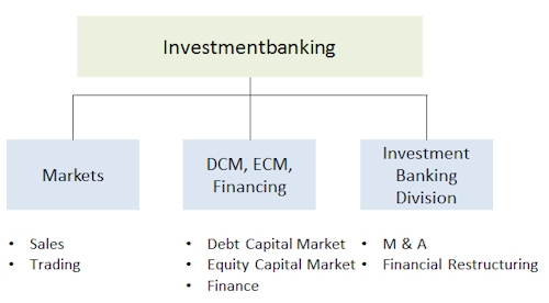 - Investmentbank - Markets kauft und verkauft die Aktien und kreiert neue Produktideen.